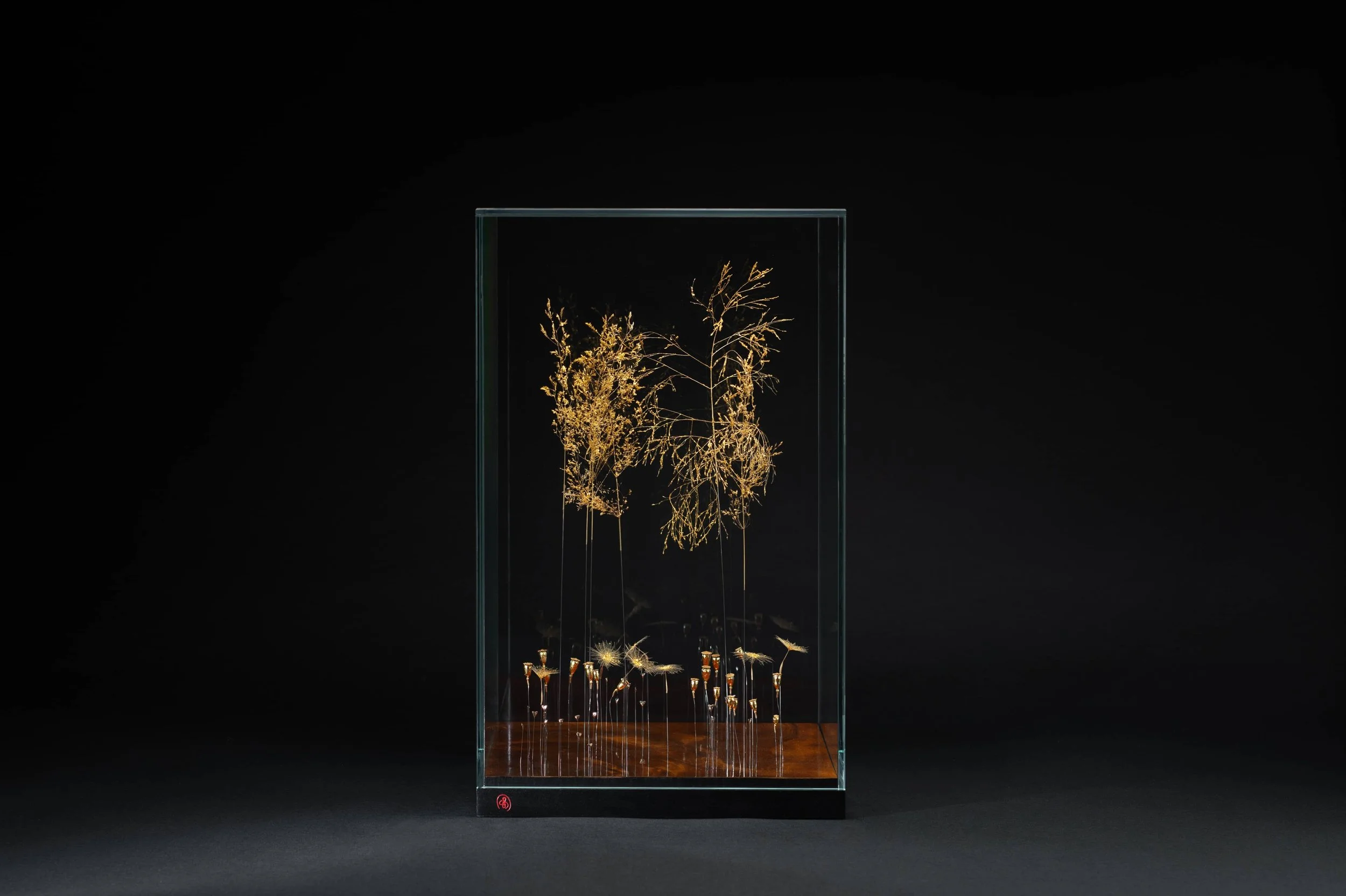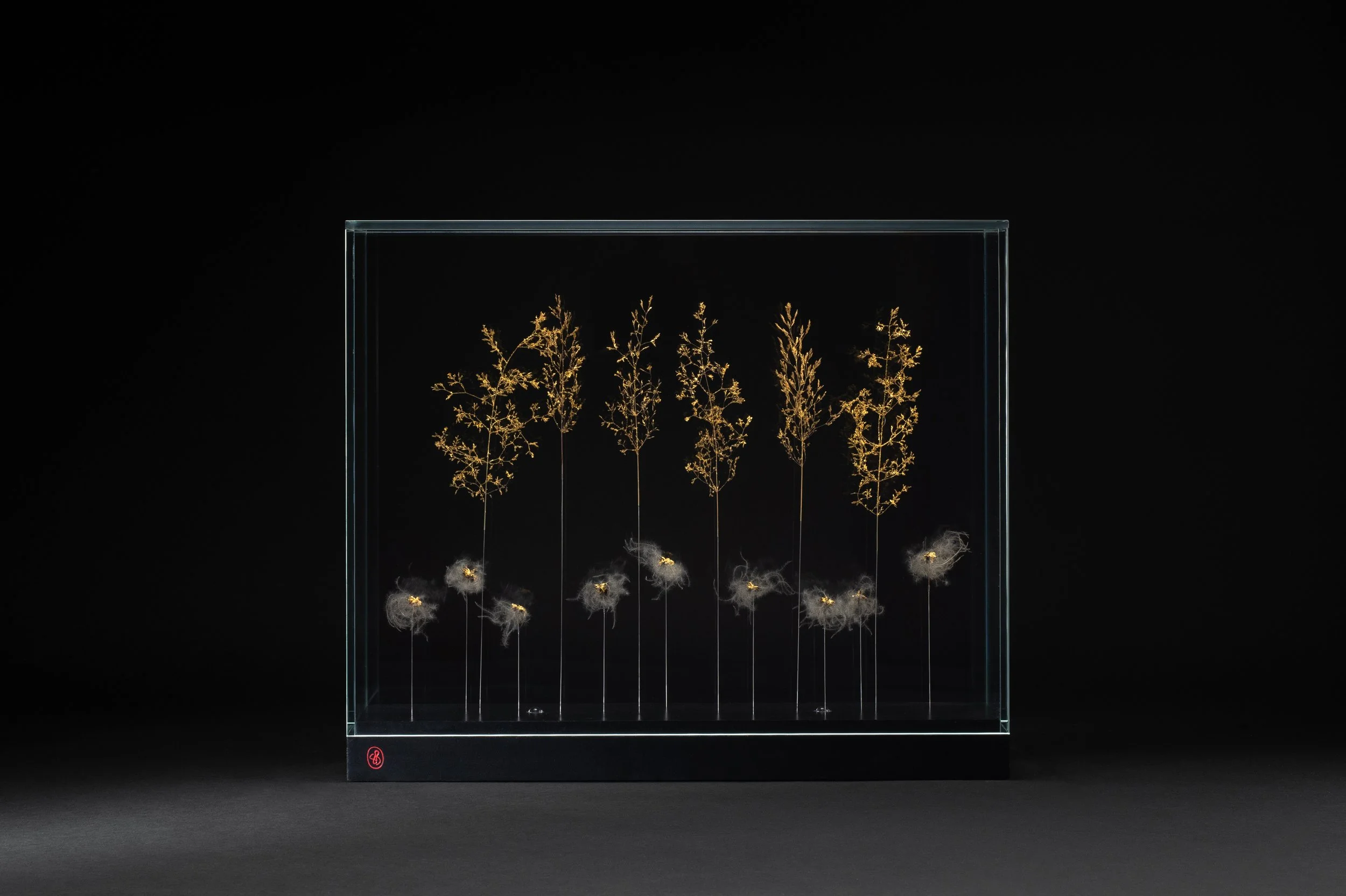 The artist handles gold leaf with palpable emotion. To express her deep admiration for the plant world, Sophie Blanc transforms fragile plants into precious icons of exceptional finesse and lightness. Sublimating the ephemeral invites us to take a fresh look at nature, revealing its discreet beauty and encouraging us to slow down. Her creations awaken our childhood memories, like her own spent in the heart of the Auvergne countryside.